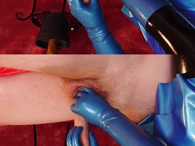 Latex Slavery and FemDom Fingering with Blond Rubber Mastix