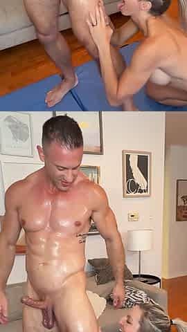 She Tries to Stop the Flow of Sperm From His Throbbing Cock