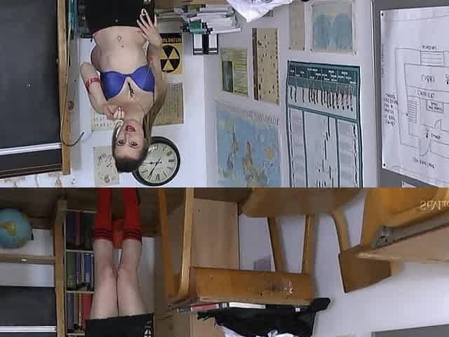 Professor asks a blond chick in a mini petticoat to bust his nuts