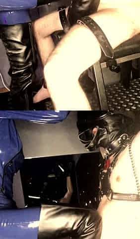 Femdom latex babe handling incel