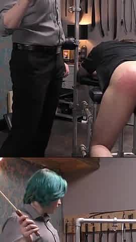 VOST engl - Impact double martinet dans le salon pour cet inférieur nu et chaste.