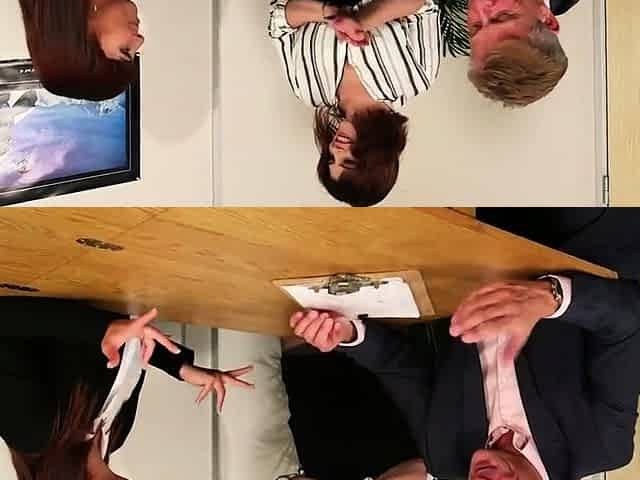 Imperious fembot housewife Mila Monet trains bored office employee a latex lesson