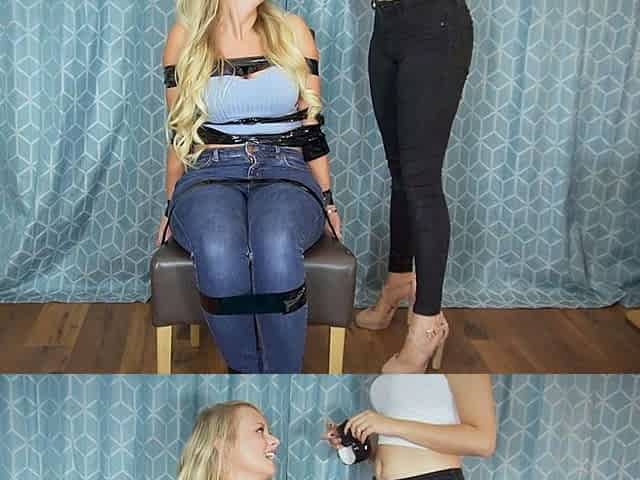 Goddess Bella Rae in a light-haired female domination session