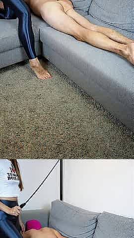 Locktober - Cage three: Sexy Mistresse in Spandex Leggings spanks her Chastity thrall in advance of squeezing him