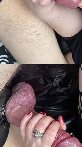 She Fingers His Ass While Sucking His Cock Prostate Massage Blowjob Cum in Mouth