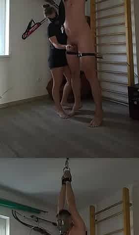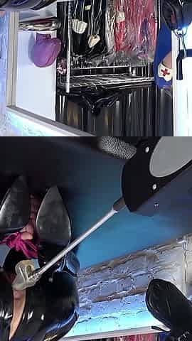 Bound to the Fuck Machine in a Cock Cage, Swallowing a Stranger's Cum, Lady Victoria Valente