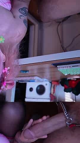 Face sitting femdom fetish babe sucks off this toyed loser