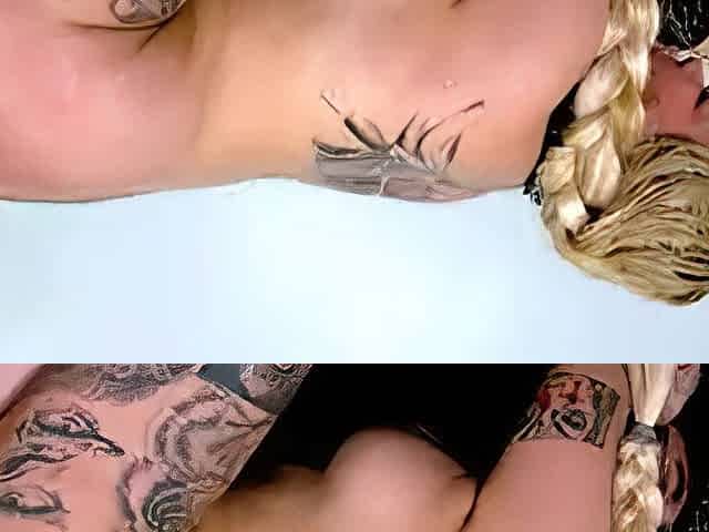 Tattooed blonde chick enjoys during MMF threesome - Sarah Jessie