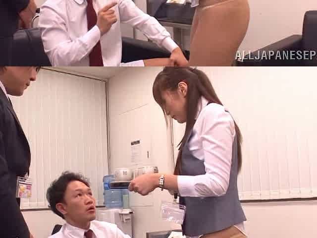 Beautiful Japanese coworker Ayu Sakurai moans during office 3-way