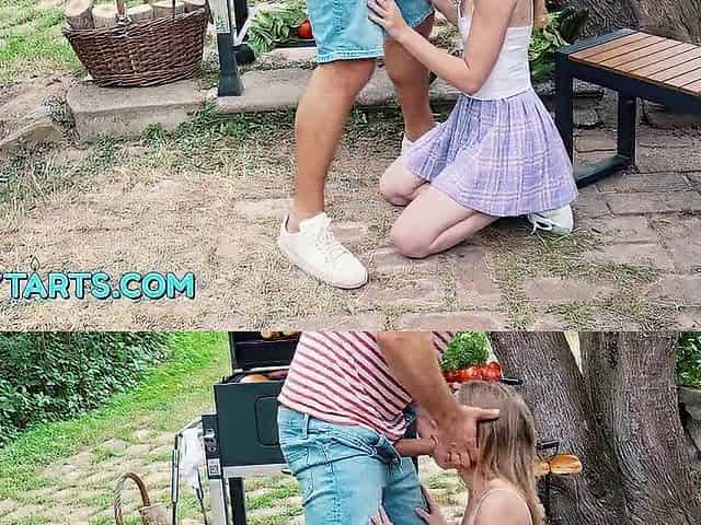 Cute Maya takes 2 large dicks during hawt summer BBQ