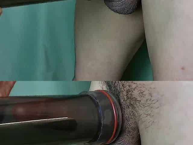 knob growth exercise with gloves and lubricant flowing from arousal