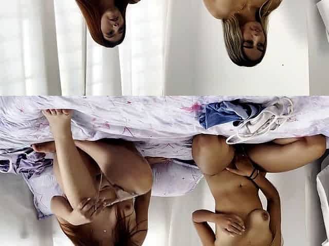 Blonde cuties Lily and Braylin have their dirty fun on the bed
