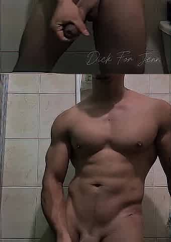 BWC Hombre cachondo y musculoso masturbándose una gran polla con un buen last de corrida