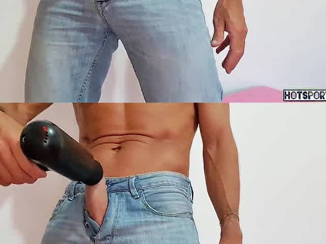 Marvelous ejaculation - hot chap with precious large penis groaning hard banging a fleshlight - Hotsportfitboy