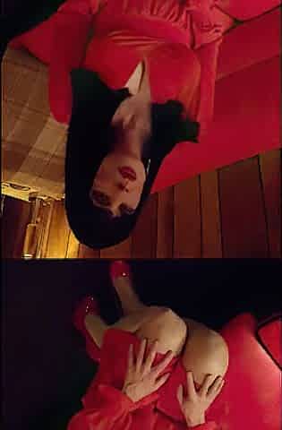 Backstage. Hawt model posing in Christmas outfit. Subscribe to see close-ups and bang