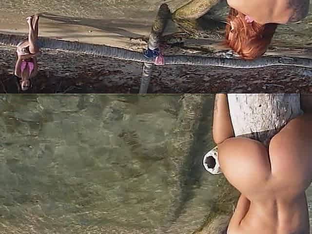 Small titted Briana toying herself poolside