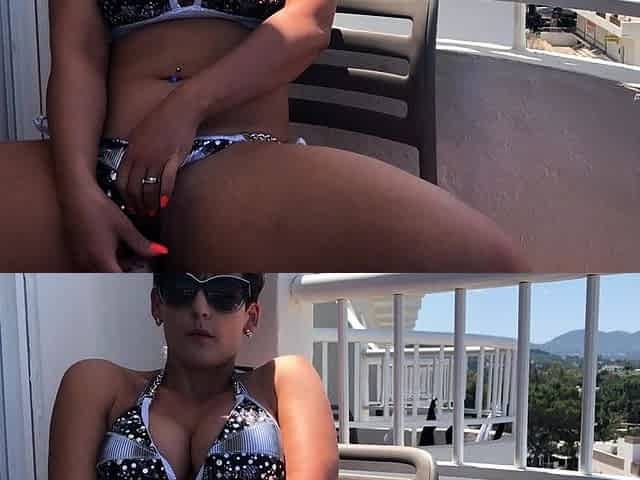 Independent Teen brunette girl toying pussy outdoor