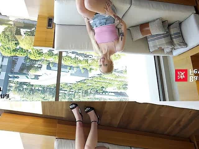 Blonde teen girlfriend gives a pov blowjob in a hotel