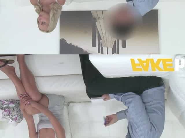 Cute blonde model loves getting fucked doggy style on casting couch
