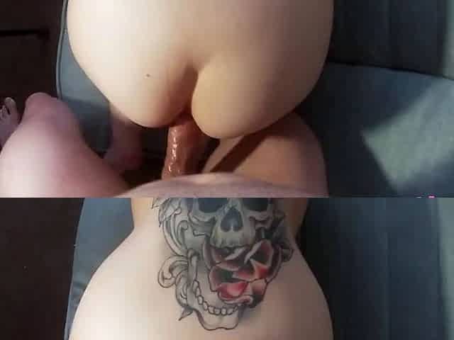 Amateur blonde tattooed babe toying her big cunt