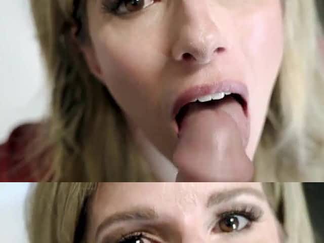Slutty milf Cherie Deville seduces her stepson and sucks his pole