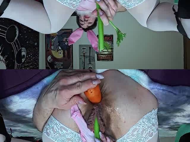 Naughty Easter Bunny Cosplay : Carrot In My Ass +celery In My Pussy , Creamy Mess & Juicy Celery Bites