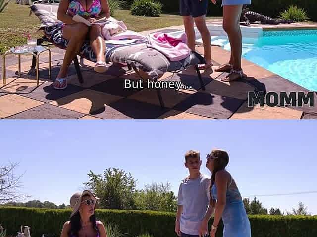 Stepmom just love to suck on my dick byt the pool and her pussy is sweet