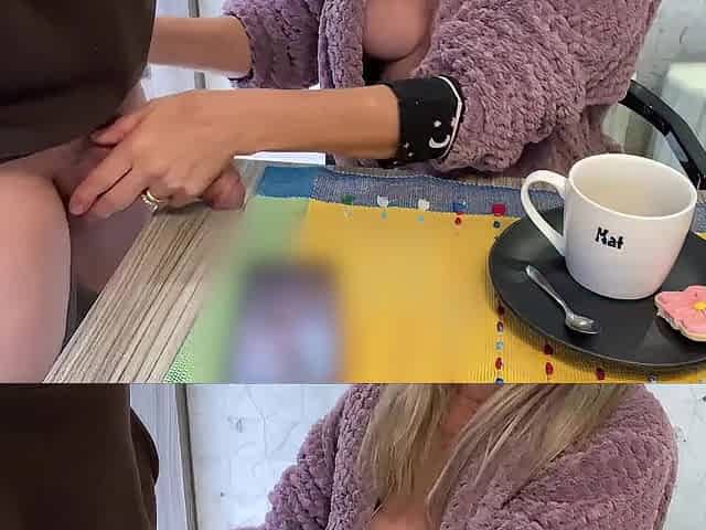 Hot blonde milf with big round tits seduces a guy with big cock and has sex with him in her apartment