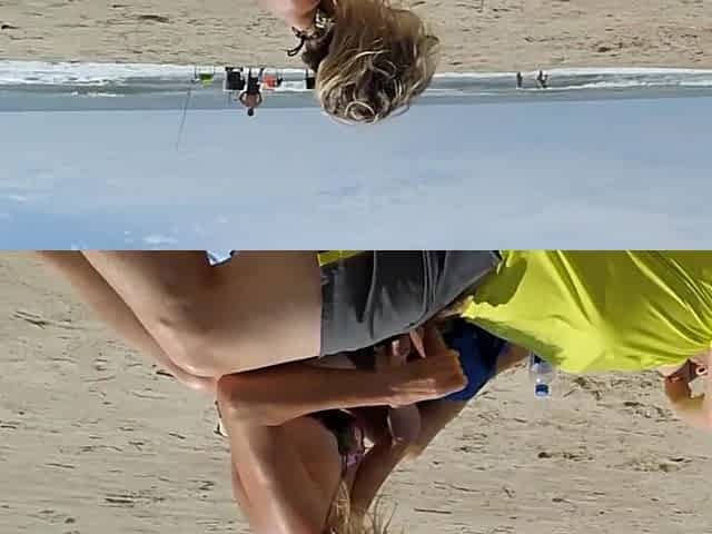 mother I'd like to fuck makes stranger ejaculate with skillful tugjob right on the beach