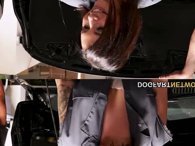 Gorgeous busty slut Carolyn Reese shows off her assets and gives blowjob
