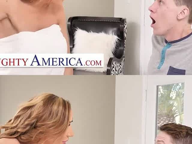 Dude fucks big tittied stepmom Britney Amber in front of sleeping girlfriend