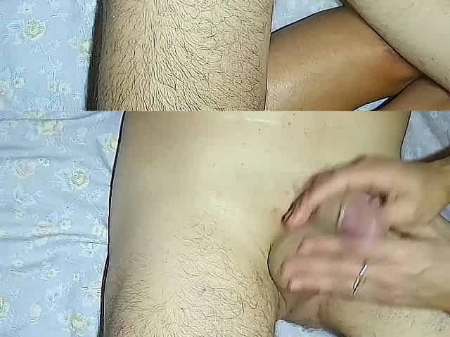wife tugjob and play with his nuts, untill this guy cum at her hands