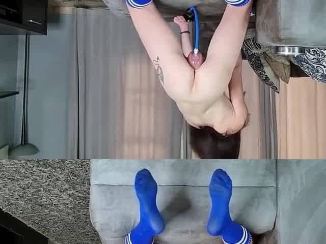 Petite Sexy Slut In Blue Socks Playing With Her Pussypump