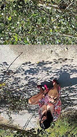 My ally's mother takes her clothing off in the woods during a walk