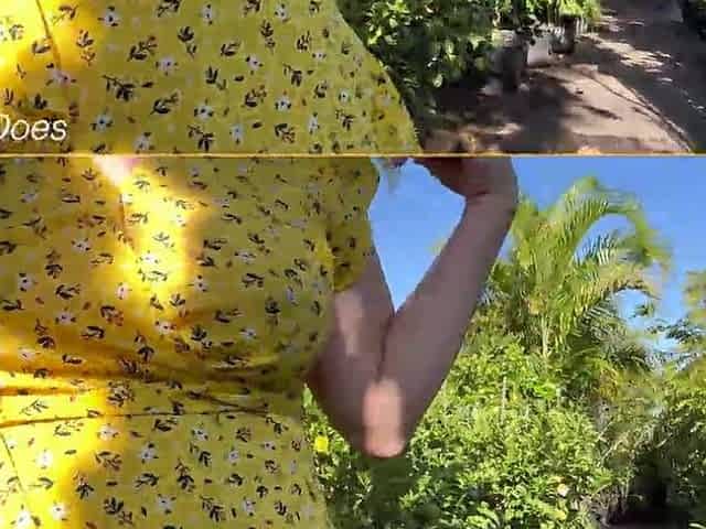 Sweet squirts from mother-in-law's pussy outdoors