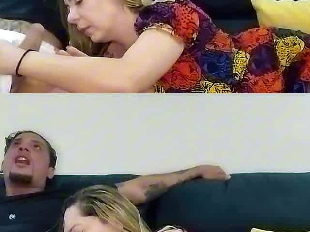 "Step mom head on step son lap blowjob his dick until cum in her mouth"