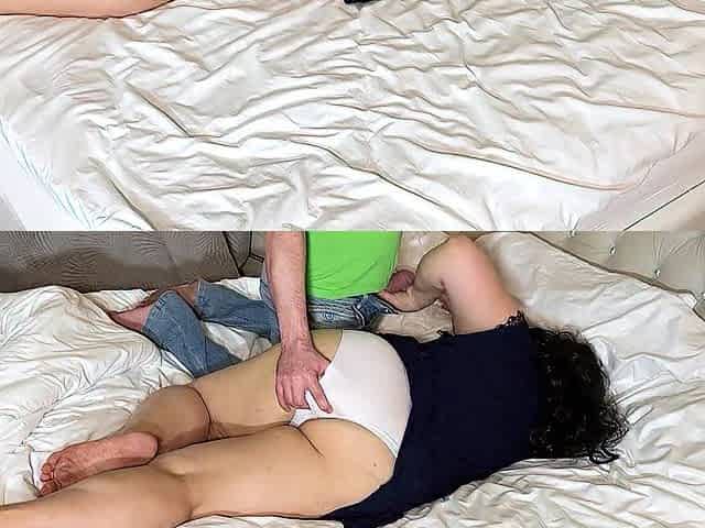Aged woman felt a penis in her booty whilst lying on the bed at home