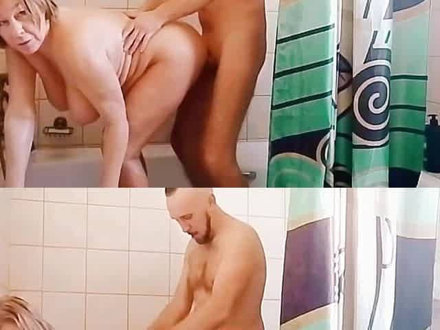 Mother-in-law shows son-in-law a wild time, filling every hole and spilling from her backside