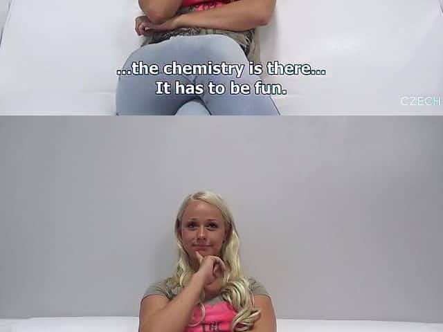 Busty blonde lady is on her very first porn casting in a hotel room