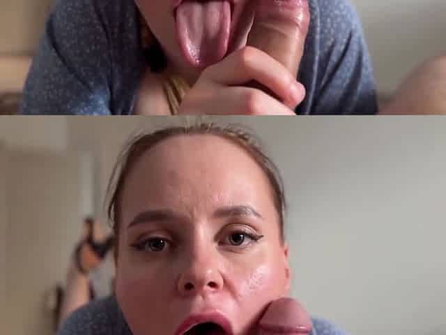 Sloppy oral-job - mother I'd like to fuck makes my knob drenched in spit - SURPRISE CUM