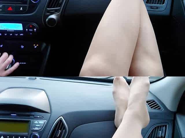 Mature Woman in Nylon Stockings Teases Taxi Driver in the Morning on the Way to the Office
