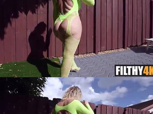 that guy rubs it below her vagina throughout her pants but cums on his booty POV