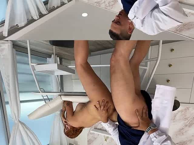 Getting pounded by my doctor in his office and he sprays my chest with cum