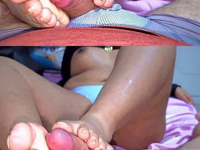 My teacher gives me a footjob during the time that asking me to record for her porn channel