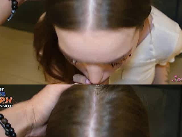 Mio Kuraki gives an amazing asian blow job to a faux-cock and a cock, money-shots included.