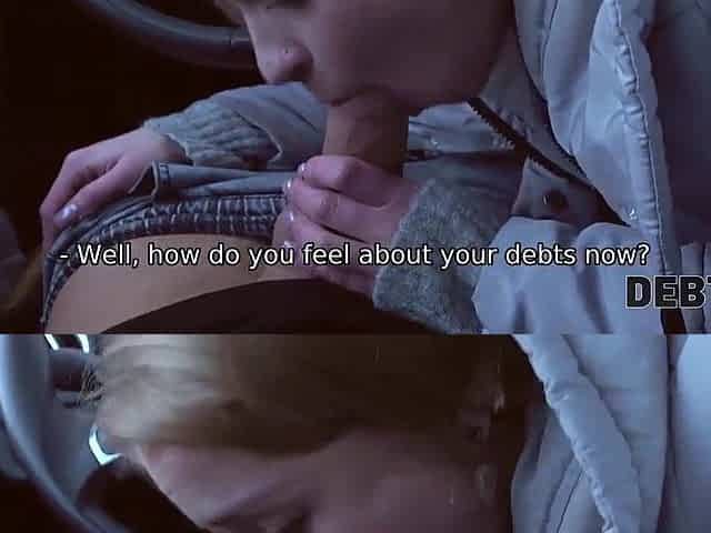 Collector visits shaved pussy of sexy teen in exchange for the big loan