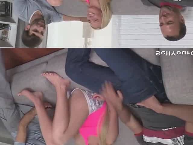 Very Petite Blond Babe 3some Sex In The Parlor For Cash
