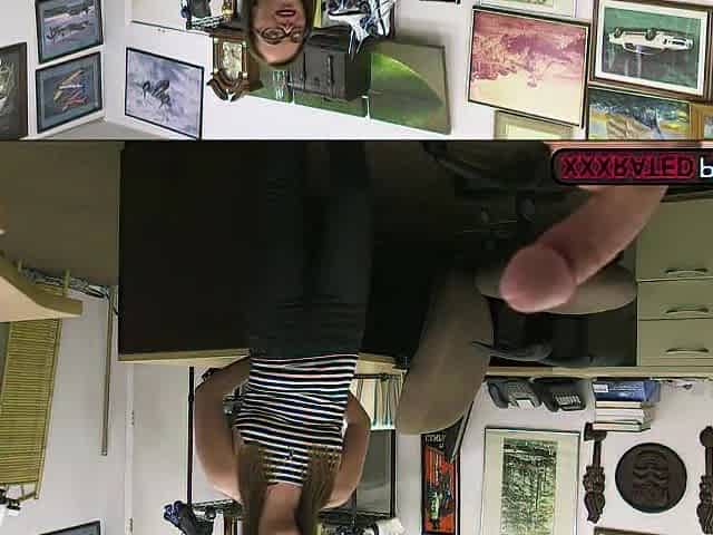 Sexy Lady Gang in black stockings rides my dick while her cuckold Husband watching for money