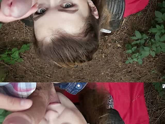 Cheap redhead slut gets money for POV outdoor sex