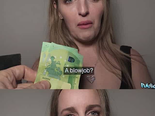 Czech redhead gets paid cash to professionally deepthroat cock in public